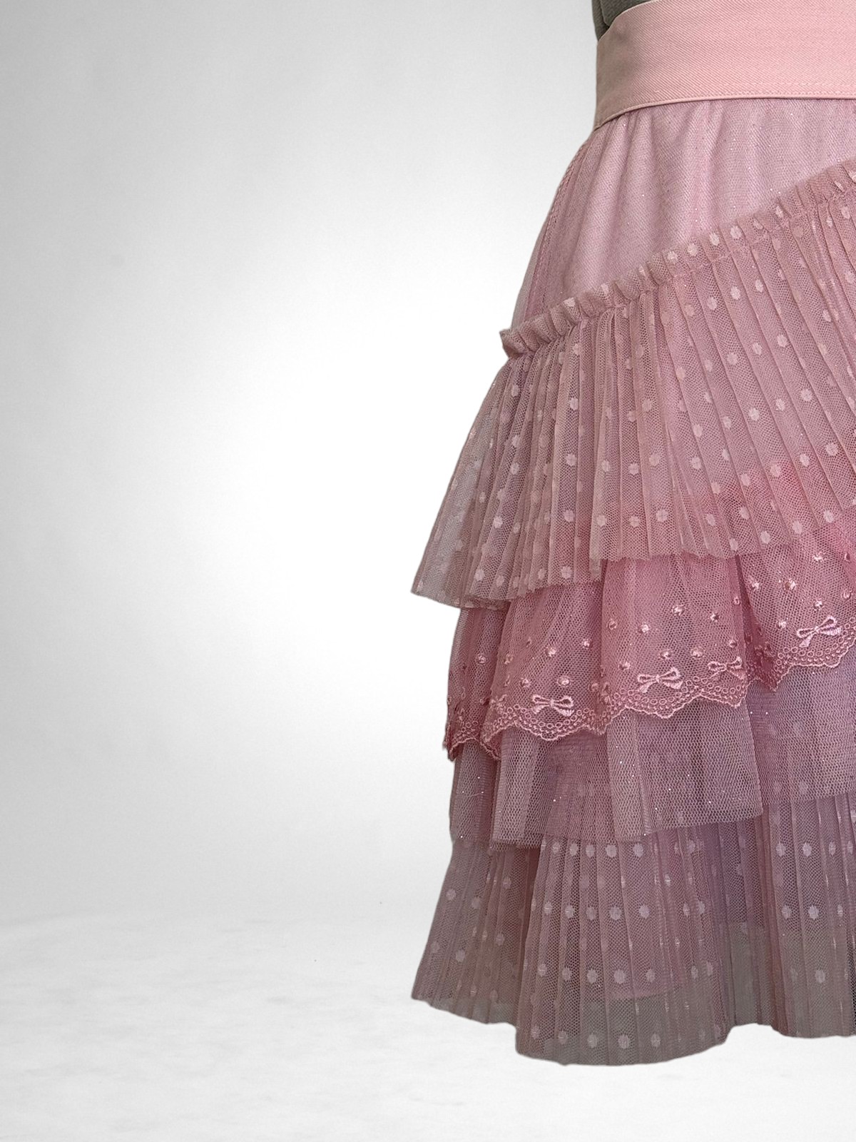 Sainha delicada com camadas de tules diferentes. Mais coquete que isso, impossível.